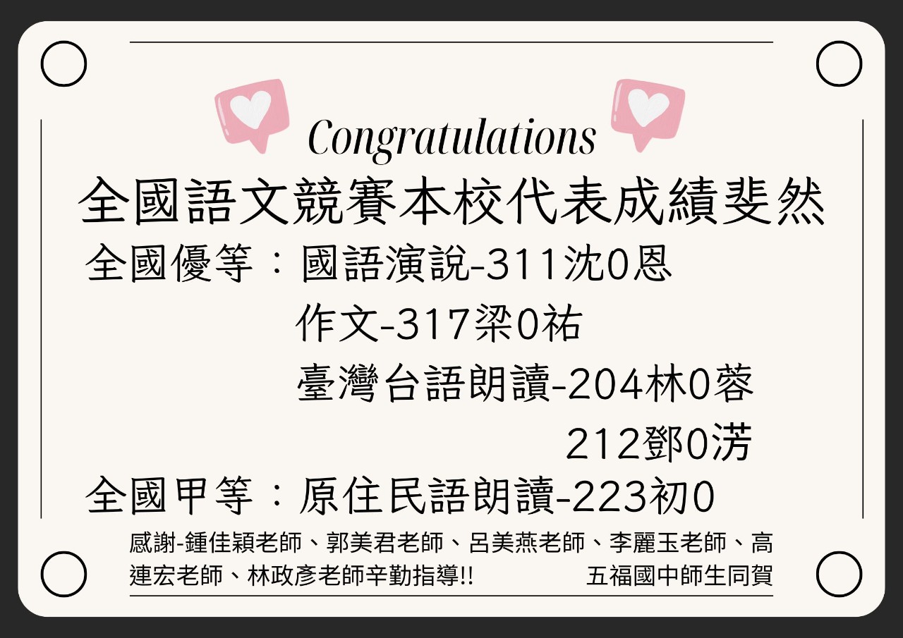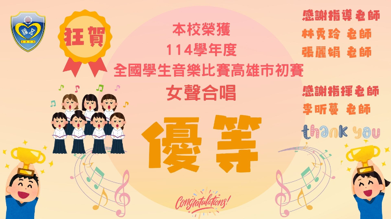 賀!!本校204紀0伶同學榮獲高雄市英語文競賽即席演講第二名!!!