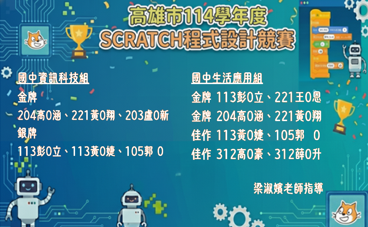 高雄市114學年度SCRATCH 程式設計競賽榮獲佳績